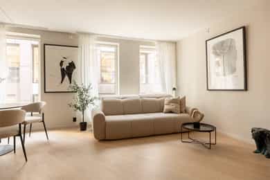 Velkommen til Kanalen 3 - Rålekker og redesignet leilighet høyt og fritt i 7. etg på Tjuvholmen. Boligen holder en gjennomgående høy standard og omfattende oppusset i 2025. Balkongen er på ca. 4 m², og sameiet disponerer også en solrik felles takterrasse. Området er svært etterspurt, med sin sjønære beliggenhet, unike arkitektur, samt alt av servicetilbud rett utenfor døren. Høydepunkter: - Nytt kjøkken fra kvalitetsleverandøren Drømmekjøkkenet - Eksklusive hvitvarer fra Miele og Bora - Dekton benkeplate - Svært lekkert flislagt bad med gulvvarme. - Designbelysning og bryter fra Buster+Punch - Plassbygget innredning og garderobe - Stort soverom med utgang til balkongen - Balansert ventilasjon - Kjellerbod på ca. 5 m² - Fjernvarme