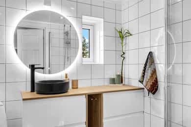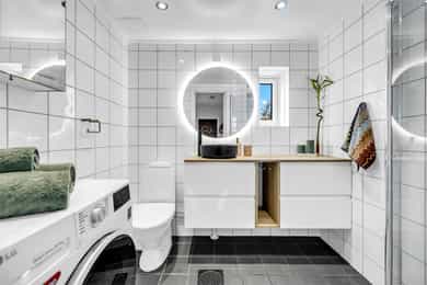 - Lett overflateoppussing av bad i 2024 med ny silikonering av dusjhjørne og ny baderomsinnredning. Montering av downlights og lys i speil - gjennomført av Storo Elektro AS
