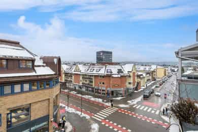 Lys og innbydende 2-roms med svært sentral beliggenhet! Balkong med flott utsikt og heis. Fjernvarme a-konto.
