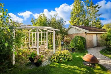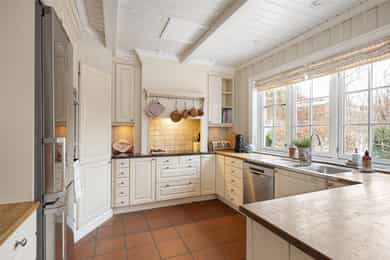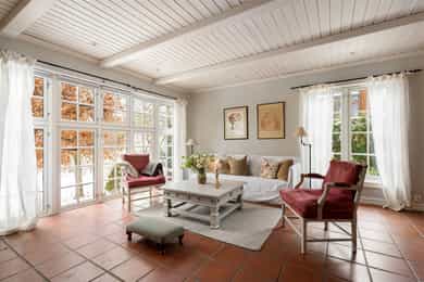 Arkitekttegnet enebolig i mur og engelsk stil tegnet av Lorentz Gedde-Dahl Arkitekter. Ligger usjenert og tilbaketrukket med en idyllisk hage i et rolig og familievennlig boligområde. Boligen er oppført over tre plan og byr på romslige, lyse oppholdsrom, gjennomtenkt planløsning og solide materialvalg. Her får du blant annet vinterhage med direkte adkomst til hage, stort kjøkken med kjølehjørne, vinrom, vannbåren varme i alle etasjer og dobbelgarasje. Pent opparbeidet hage med markterrasse og lysthus gir gode uteoppholdsarealer med høy grad av privatliv. - God takhøyde og romslige rom - Vannbåren varme i alle etasjer - Vinrom med temperaturkontroll - Usjenert og tilbaketrukket beliggenhet - Dobbelgarasje - Vinterhage - Romslige rom og gjennomgående god takhøyde