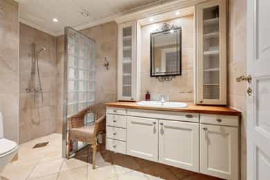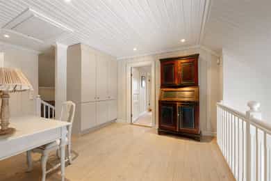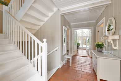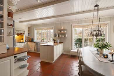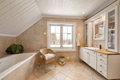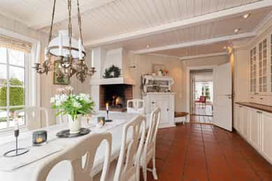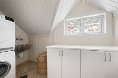 Boligen er oppført over tre plan og fremstår med gjennomgående god takhøyde og romslige, funksjonelle rom. Planløsningen er godt gjennomtenkt og gir en naturlig inndeling mellom oppholdsrom, private rom og birom. - 1. etasje - Boligens hovedetasje har en svært god planløsning med naturlig flyt mellom rommene og rikelig med lysinnslipp. Entré | Innbydende inngangsparti med skiferbelagt repos. Romslig hall med god garderobeplass. Stue | Romslig og lys stue med flere soner for både sofagruppe og spise-/lesekrok. Ildsted gir lun stemning og ekstra komfort. Kjøkken m/spisestue | Stort og funksjonelt kjøkken fra byggeår, oppgradert med nyere hvitevarer. Innredning med profilerte fronter, heltre benkeplate, underlimt dobbel vask og kjøkkenventilator med avtrekk til det fri. Eget kjølerom/kjølehjørne med Norcool kjøleaggregat gir ekstra lagringskapasitet. Flislagt gulv med vannbåren gulvvarme, malt trepanel på vegger og himling med downlights. Rommet har god plass til stor spisegruppe og rikelig med naturlig lys. Gjestetoalett | Praktisk WC med flislagt gulv, stående trepanel på vegger, gulvmontert toalett og servant. Vinterhage | En flott vinterhage som forlenger utesesongen, med direkte utgang til hagen via tofløyet balkongdør. Herfra er det adkomst til markterrasse i skifer og videre ned til hage og lysthus. - 2. etasje - En privat sone med soverom og bad, godt tilpasset barnefamilier eller de som ønsker tydelig skille mellom oppholdsrom og private rom. Trappehall / gang | Lys og luftig gang som knytter etasjens rom sammen. Master soverom | Romslig hovedsoverom med eget bad og utgang til fransk balkong med smijernsrekkverk. God plass til garderobeløsninger. Bad tilknyttet master soverom | Privat bad med funksjonell og gjennomtenkt planløsning. Badet er innredet med nedfelt servant med servantskap, overskap med veggmontert speil, vegghengt toalett samt flislagt badekar og dusjvegger i glassbygestein. Soverom 2 og 3 | To gode soverom med plass til seng, skap og skrivebord – godt egnet som barnerom, gjesterom eller kontor. Bad | Flislagt bad for etasjen med 30 × 30 cm fliser og vannbåren gulvvarme som gir lun og behagelig komfort. Baderomsinnredning i heltre med nedfelt servant, vegghengt speil, gulvmontert toalett og smart oppbevaringsplass. Rommet har en praktisk og stilfull dusj i hjørnet, nedsenket og avskjermet med glassbyggestein som skaper både lys og privatliv. Gulvmontert toalett fullfører et funksjonelt og innbydende bad. - Kjelleretasje - Entrè/gang | Adkomst via egen ytterdør med glassfelt. Romslig gang med god plass til oppbevaring og intern kommunikasjon mellom rommene. Vinrom | Et stemningsfullt vinrom med støpte hyller i murstein og flislagt gulv. Eget kjøleaggregat gir optimale lagringsforhold – en sjelden og eksklusiv kvalitet. Oppholdsrom / peisestue | Trivelig rom med ildsted, godt egnet som TV-stue, kjellerstue eller hobbyrom. I kjelleren er det flere rom som egner seg godt til lagring, verksted eller treningsrom etter behov. _________________________________ Tekniske innstallasjoner | Boligen har rør-i-rør-system. Det er synlige avløpsrør i plast under servant på bad og kjøkken, som leder til soilrør (hovedavløpsrør) i støpejern. Boligen har mekanisk avtrekk med sentralt ventilasjonsaggregat (Universal loftsvifte fra produsent Flexit), plassert på loft. Det er tilluft til enkelte rom via luftespalter i vinduer samt åpninger under dører. Boligen har borehull for grunnvarme (bergvarme). I teknisk rom er det plassert OSO varmtvannsbereder. Boligen har sentralstøvsuger fra produsent Flexit, plassert i kjeller/teknisk rom. Det er etablert kjøleaggregat til kjølerom samt aggregat i vinrom. Boligen har vannbåren varme i alle etasjer, med fordeling plassert i teknisk rom i kjeller. Sikringsskapet er utstyrt med automatsikringer, med hovedsikringer på 63 A. Lovpålagte røykvarslere og brannslukningsutstyr er på plass, herunder brannslange under benk på kjøkken.