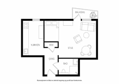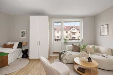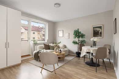 Lys og innbydende 1(2)-roms med balkong 3 kvm - VV/fyring og TV/internett ink. - Parkeringsleie* - Lave FK 2.694,-