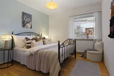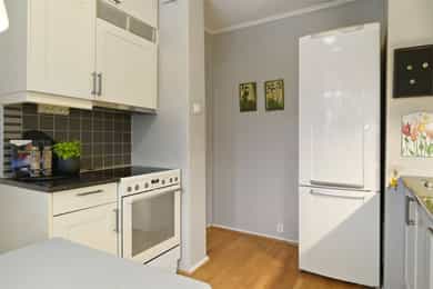 Pen og romslig 4-roms hjørneleilighet i grønne omgivelser. Solrik balkong 8 m². Parkering. Idyllisk utsikt. Bad fra 2017