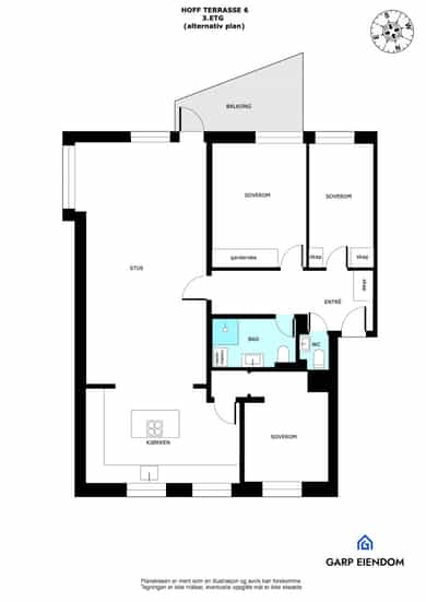 • Lys, gjennomgående og innbydende 4-roms leilighet