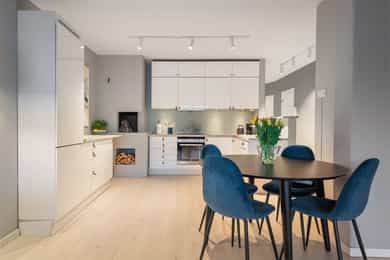Lys og lekker 4roms toppleilighet sentralt på Majorstuen. Peis. Brannbalkong. Bad 2020. Gjennomgående og god planløsning