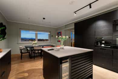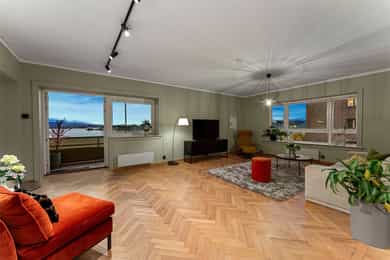 Påkostet, romslig 5-roms endeleilighet med flott sjøutsikt - Sydvestvendt balkong - Peis - Heis - Parkeringsleie