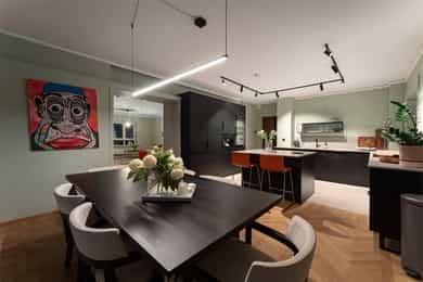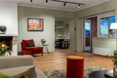 Velkommen til Gabels gate 1D - En lekker og gjennomgående 5-roms endeleilighet med flott sjøutsikt på Skillebekk. Leiligheten ligger høy og fritt med en sydvestvendt balkong med svært gode solforhold. Leiligheten ble betydelig oppgradert i 2022/2023 med blant annet nytt kjøkken, nytt bad, oppgradering av det elektriske anlegget samt fornyede innvendige overflater. Høydepunkter: - Heis - Peis - Endeleilighet - Mulighet for garasjeleie - Oppusset og påkostet i 2022/2023 - Lekkert bad, vaskerom og toalettrom - Sydvestvendt, innglasset balkong på 10 kvm - Lekkert Sigdal kjøkken med kvalitetshvitevarer fra Miele - Svært gode solforhold og en fantastisk utsikt over Oslofjorden - Ettertraktet beliggenhet på Skillebekk med et rikt servicetilbud, rekreasjonsmuligheter og offentlig transport