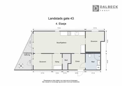 4. etasje: Entré, stue/kjøkken, 2 soverom, gang, walk-in, bad.