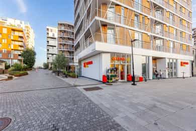 Leiligheten ligger i Lillestrøm sentrum med umiddelbar nærhet til offentlig kommunikasjon og byens fasiliteter. På kulturfronten står Lillestrøm for store nysatsinger og kan by på et fristende utvalg innenfor uteliv, shopping og små spesialbutikker. I tillegg til eget kjøpesenter og koselige handlegater har Lillestrøm et flott kulturhus, moderne kino og et mangfold av restauranter, kaféer og uteplasser. På utescenen ved torget arrangeres det ofte konserter og forestillinger med mer, og Byfesten er et av årets høydepunkt. Da kryr det av mennesker i hele sentrum, og kjente musikere underholder på en av mange scener. Fra boligen er det kun en kort spasertur til Åråsen fotballstadion, og litt bortenfor finner du koselige Sørum gård, Skedsmohallen, fine turstier og Lillestrøm golfklubb. Nebbursvollen Friluftsbad ligger ved Nitelva og er byens populære badested med basseng, grøntområder, kiosk m.m. I samme område finner du flotte tur- og rekreasjonsområder, samt opplyste stier perfekt for en joggetur. Lillestrøm satser stort på kunst og kultur, og det er utplassert flere statuer og andre kunstverk langs stiene. Dagligvarehandelen kan blant annet gjøres på Coop Extra, Kiwi, Rema 1000 og Meny. Ønsker du ytterligere servicetilbud ligger Lillestrøm Torv kjøpesenter, samt de øvrige handlegatene i Lillestrøm sentrum, rett utenfor døren. Det er også kort vei til Coop Obs Hypermarked og Strømmen Storsenter, landets mest innholdsrike kjøpesenter. Område gir mulighet for offentlig kommunikasjon via buss og tog, og Lillestrøm togstasjon ca. 8 minutters gange fra boligen. Hurtigtog/flytog fra Lillestrøm til bl.a. Oslo S og Oslo Lufthavn har en reisetid på henholdsvis 10 og 12 minutter. Med bil fra sentrum tar det ca. 5 min til Strømmen, 8 min til Lørenskog, 16 min til Oslo S og 23 min til Oslo Lufthavn.