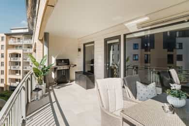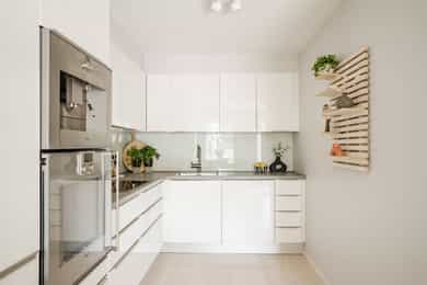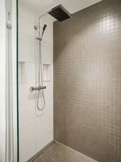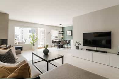 GANG Lys og åpen entré som gir et godt førsteinntrykk av boligen. Praktisk nisje med plass til jakker og sko. Fra entréen er det adkomst til boligens stue. Callinganleggen via Defigo som gjør at man kan åpne via telefon. Adkomst til leiligheten via heis eller felles trappeoppgang. STUE Stuen er et romslig og sosialt rom med delvis åpen løsning til kjøkkenet. Store vindusflater mot syd som fører til godt med naturlig lys både sommer og vinter. Her er det mulighet for en hyggelig sittegruppe med tilhørende møblement. I det åpne og innbydende rommet er det en stilig gasspeis som bidrar til en hjemmekoselig og harmonisk følelse. Overflatene i leiligheten ble pusset opp i 2020, både gulv og vegger. Fra stuen er det direkte adkomst til en stor og herlig balkong på ca. 14 kvm. Her er det rikelig med plass til et hyggelig utemøblement samt grill. Det er lagt fliser på gulvet og installert elektrisk stråleovn på veggen. I følge selger er det sol her fra ca. 10:00-18:00 midt på sommeren. Det er tillatt å grille på balkongen med gassgrill og elektrisk grill, så sant dette er i henhold til brannforskrifter og ikke til sjenanse for naboer. KJØKKEN Boligens kjøkken har kvalitetsrike hvitevarer og rikelig med benk- og oppbevaringsplass. Kjøkkenet er innredet med hvite glatte høyglans folierte fronter og laminat benkeplate. Ny benkeplate og kjøkkenvask fra 2020. Her er det integrert induksjonstopp (bredde 70 cm), stekeovn, kaffemaskin, oppvaskmaskin og vinskap fra anerkjente Gaggenau, samt fryse- og kjøleskap med isbitmaskin fra Miele. God plass til spisebord i tilknytning kjøkkenet. HOVEDSOVEROM MED WALK-IN-CLOSET Hovedsoverommet er luftig med god plass til dobbeltseng og nattbord. Fra soverommet er det adkomst til et walk-in-closet med gode oppbevaringsmuligheter. Videre har soverommet en fransk balkong som bidrar til at rommet får rikelig med naturlig lys. Behagelig med vegg-til-vegg teppe på gulv. SOVEROM II Boligens andre soverom er lyst og har rom for en større seng og tilhørende møblement. Her er det god plass til å sette inn stort garderobeskap og skrivebord hvis man ønsker det. Rommet er i dag innredet som barnerom, men passer også fint til kontor og gjesterom. BAD Leilighetens bad ble rehabilitert i 2015. Baderommet har hvite fliser på veggene samt gråbrune fliser på én vegg. Videre er det gråbrune fliser over varmekabler på gulvet og downlights i tak. Her er det en dusj med glassdør, vegghengt toalett med demper på dolokket, formstøpt servant med underskap og opplegg for vaskemaskin. Stor disjnisje med regnfallsdusj og innfelte hyller til såpe. Mekanisk avtrekk via en eksternt vifte. Avtrekket styres via ventilatorhetten på kjøkkenet og avtrekket bør stå i en kontinuerlig driftmodus slik at luftfuktigheten på badet holdes nede. Luftespalten for tilluft under dørbladet til baderomsdøren anses som tilstrekkelig. Det ble fremvist en FDV-perm til takstmann som tilhører badet fra 2015.