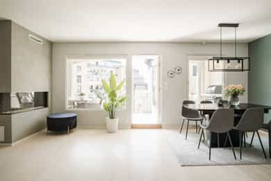 2020: Ny parkett i boligen. Veggene ble helsparklet og alle overflatene i leiligheten ble malt. Ny gasspeis. Nye benkeplater på kjøkkenet og kjøkkenvask.