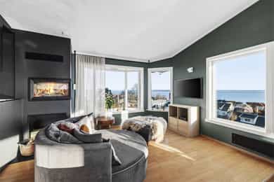 Velkommen til Bakkeåsveien 13! En innholdsrik enebolig med en fantastisk beliggenhet i en rolig og sjarmerende gate i idylliske Åsgårdstrand. Boligen ligger skjermet, høyt og fritt med praktfull sjøutsikt fra nærmest alle oppholdsrom. Fra den stenlagte gårdsplassen føres man opp til boligen via en flott trapp med varmekabler. Innbydende og hyggelig inngangsparti - allerede her kan man nyte den fantastiske utsikten over Oslofjorden! Man kommer inn i en flislagt entre med god plass til oppbevaring av sko og yttertøy. Videre har man en flott hall med flere møbleringsmuligheter og trapp opp til boligens hovedetasje. Stor og lys kjellerstue med flere bruksmuligheter - også herfra kan man nyte sjøutsikten! Dersom man ønsker et ekstra soverom kan det være mulighet for å stelle i stand dette her. Videre har man bad med toalett, dusj og servant, to fine soverom, og to praktiske lagerrom i denne etasjen. Hovedetasjen er lagt til andre etasje for å maksimere utsikten og lysforholdene! En flott trapp fra første etasje leder opp til hjertet av boligen. Her møtes du av en lys og spennende stue i åpen løsning med kjøkkenet. Her har mange store og fine vindusflater hvor sjøutsikten over Oslofjorden kan nytes i alle retninger. Her har tre av vinduene blitt oppgradert med nanoteknologivinduer med påmontert elektrisk solskjerming i 2016. Fra stuen er det også utgang til en hyggelig, overbygget frokostbalkong som helt nylig er totalrenovert. I stuen er det både en peis og ny vedovn, henholdsvis der det er naturlig plass for spiseplass og sittegruppe. Kjøkkenet er utstyrt med integrerte hvitevarer og kjølerom. I hovedetasjen er det også praktisk vaskerom med utgang til hagen, og til og med her kan man nyte den flotte utsikten. Det er et stort og fint hovedsoverom med egen walk-in garderobe og nyoppusset bad med moderne og stilrene mosaikkfliser, en stor og åpen dusjsone, frittstående servant, vegghengt toalett og toalett. Fra hovedetasjen har man også utgang til uteplass som vender mot hagen i bakkant av boligen, her er det nye terrassebord fra 2020. Tilstandsrapport for boligen er vedlagt salgsoppgaven. Se denne for nærmere informasjon om tilstandsgrad.