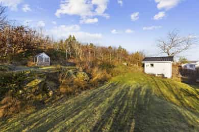 En spennende og flott opparbeidet tomt beliggende høyt og fritt! Hagen er anlagt med plen, diverse prydbusker og beplantning, et praktisk drivhus og en utvendig bod/uthus. Her kan man flytte seg etter solen og nyte lange sommerdager med familie og venner på for eksempel den usjenerte og lune uteplassen som ligger i bakkant av boligen.
