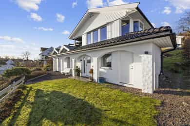 Velkommen til Bakkeåsveien 13! En innholdsrik enebolig med en fantastisk beliggenhet i en rolig og sjarmerende gate i idylliske Åsgårdstrand. Her bor man høyt og fritt med panoramautsikt over Oslofjorden! Boligen går over to etasjer med store og gode rom. I hovedetasjen i 2. etasje har en meget romslig stue med to peiser og god plass til flere soner, samt en spisestue med utgang til en overbygget balkong. Her finner du også en praktisk "master suite" med direkte adkomst til et stort, lekkert bad som ble pusset opp i 2023 og walk-in closet. 1. etasje byr på to soverom, et bad, et stort kontor/hobbyrom med flere bruksmuligheter, samt en praktisk bod. Det er ingen boplikt, hvilket gjør at boligen også utmerket skulle kunne fungere som fritidsbolig! Velkommen til en hyggelig visning!