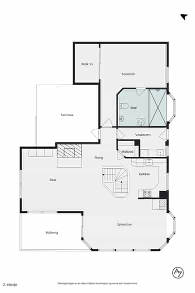 Arealet i denne boligen er vanskelig eller umulig å måle opp helt nøyaktig på grunn av utforming/innredning av rom/bygningskonstruksjoner.