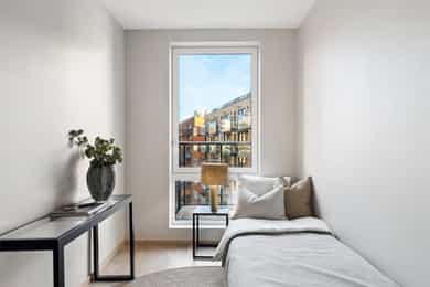 Leiligheten ligger meget sentral til rett ved Triaden. Den er ferdigstilt i 2025 og har en lys og gjennomgående planløsning. Romslig entré med god plass til garderobeskap. Stue med god plass til både sofa- og spisegruppe. Hovedsoverom med utgang til østvendt balkong. I området er det et bredt utvalg av butikker, vinmonopol, matbutikker, restauranter, treningssenter, hotell, flerbrukshall mm. - Sentral beliggenhet ved Triaden - Lys og gjennomgående 3-roms - Fin og funksjonell planløsning - Markterrasse på 9 kvm. - Åpen stue-/kjøkkenløsning - Integrerte hvitevarer - Lekkert flislagt bad - Fjernvarme/sentral oppvarming - Balansert ventilasjon m/varmegjenvinning - Heis til felles takterrasse, meget solfylt - Innflytningsklar, nybygg garanti til 2030 - Mulighet for kjøp av garasjeplass*