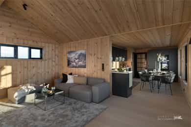 Under 2t. fra Oslo - Ny, innholdsrik hytte. Høy standard! Panoramautsikt, solrikt, ski in/out. 2 bad++. Se "360 visning"