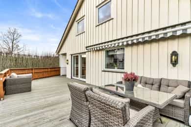 Innholdsrik enebolig m/familievennlig beliggenhet! Dobbelgarasje - Elbillader - Herlige terrasser og stor hage!
