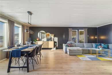 Velkommen til Fjellmyra 12 Eiendomsmegler Karoline Nyheim presenterer her en innholdsrik og flott enebolig som fremstår som godt ivaretatt og har en familievennlig planløsning over to etasjer. Her får du romslige oppholdsrom, tilbaketrukket kjøkken, tre soverom, kjellerstue, to bad, vaskerom og gode oppbevaringsmuligheter. Boligen kan videre skilte med svært gode sol- og utsiktsforhold, balkong, integrert garasje, el-billader og parkering på egen tomt. Eiendommen ligger i et rolig og etablert boligområde uten gjennomgangstrafikk, med nærhet til skole, barnehage, butikk, kafé og pub, samt fine turområder. Velkommen til en hyggelig visning!