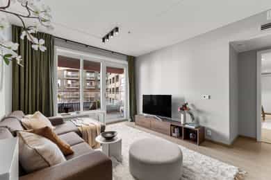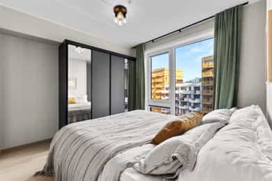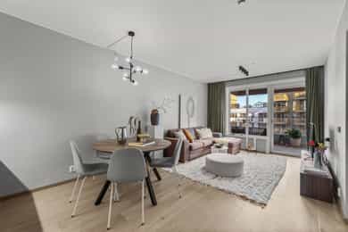 Velkommen til Rostockgata 94 - En stilren og moderne 3-roms selveier fra 2023 med balkong. Leiligheten ligger i en luftig 5. etasje med heisadkomst. Boligen inkluderer en åpen stue-/kjøkkenløsning med plass til spisegruppe, to soverom, bad og en innvendig bod. Fin beliggenhet i vakre og stilfulle Clemenskvartalet med umiddelbar nærhet til badebrygge, restauranter, butikker m.m. Høydepunkter:
