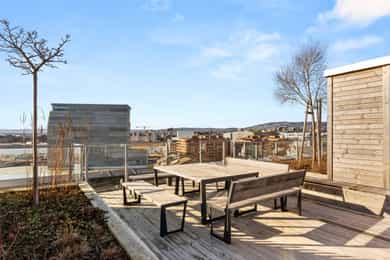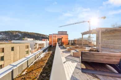 • Felles takterrasser med panoramautsikt og gode solforhold