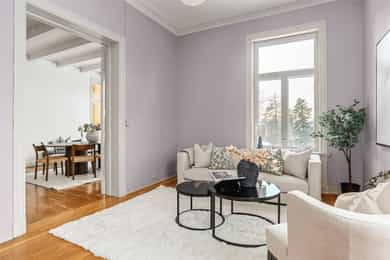 Klassisk og sjeldent attraktiv 5r selveierleilighet beliggende i et ærverdig og flott bygg ved parken på St. Hanshaugen. Eiendommen ligger på et høydedrag og har svært god utsikt mot nord, vest og øst. Det er kun syv seksjoner i sameiet m/to leiligheter i hver etasje, så leiligheten ligger flott plassert på hjørnet/enden av bygget. Leiligheten har tre balkonger m/meget gode solforhold. Leiligheten ligger i byggets 2. etg og inneholder: entré, gang, tre stuer på rad, hovedsoverom m/eget bad, separat kjøkken, bad 2 og innredet rom/barnerom. Det er behov for oppussing og planløsningen byr på mange muligheter hvis man vil gjøre endringer. Her kan man skape drømmeboligen! Kort oppsummert: Vakker selveierleilighet Idyllisk beliggenhet v/parken En av Oslos flotteste gater (enveiskjørt)