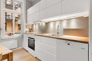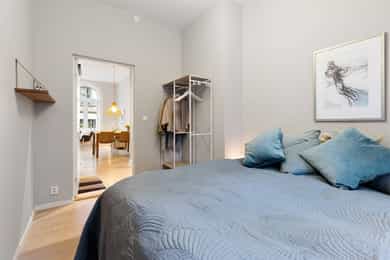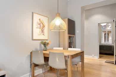 Arbins gate 13 B har en attraktiv beliggenhet i Vika, kun et kvartal unna Slottsparken. Leiligheten ligger på hjørnet av Arbins gate og Løkkeveien med kort vei til Aker Brygge/Tjuvholmen, Solli, Frogner og sentrum. Her bor du midt i et av Oslos mest sentrale og populære områder. Kort gangavstand til alt av servicefasiliteter, uteliv og offentlig transport. Rett utenfor leiligheten finner du Joker. Solli Plass har rikelig med serveringssteder, butikker, Sats treningssenter, trikk og buss. Spisesteder som Alex Sushi, Palace Grill, Pascal og Ruffino ligger alle innen ca. 3 minutter gange fra leiligheten. Ned mot fjorden finner du Aker Brygge og Tjuvholmen, området er et senter for næringsliv, handel og hygge i Oslo. Her tilbys det aller meste av servicetilbud som Vinmonopol, gallerier, flere typer butikker, hyggelige spisesteder i alle prisklasser, badestrand, båthavn, osv. Det nye Nasjonalmuseet er også få minutter unna. Går du oppover Løkkeveien og videre inn i Parkveien tar du deg raskt til Hegdehaugsveien og Bogstadveien, Oslos mest populære handlegate. Her finner du utallige butikker, barer og restauranter. Kort vei til absolutt alt av offentlig kommunikasjon. Buss og trikk fra Solli Plass, Ruseløkka, Slottsparken og Nationaltheateret. Inngangen til Nationaltheateret med tog, flytog og T-bane ligger ca. 200 meter fra leiligheten.