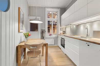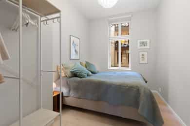 Innbydende, gjennomgående 2-roms selveier med egen inngang og flotte klassiske detaljer. Stue har peis, god takhøyde og store buede vinduer som gir rikelig med lysinnslipp. Velholdt bolig oppgradert den siste tiden med bl.a. nye gipsvegger, skjult el-anlegg i stue og soverom i 2025 samt nye dusjvegger i 2024. Kjøkken, parkett, el-anlegg og innerdører i gang fra 2016. Oppgradert bad, ny varmtvannsbereder og ny peis (pipeløp 2021) i 2013. Legg merke til: