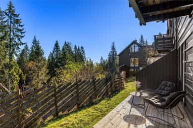 Eiendommen har en attraktiv beliggenhet helt i markagrensen på Voksenkollen. Her bor du bokstavelig talt på toppen av Oslo, med Nordmarka som nærmeste nabo og frisk luft og ro som en del av hverdagen. Beliggenheten gir en unik kombinasjon av «hyttefølelse i ett med naturen» og nærhet til byen – kun 25 minutter med T-banen til Majorstuen. Boligen ligger i et hyggelig tunmiljø med hage, lekeplass og pent opparbeidede fellesarealer. Nabolaget består hovedsakelig av småbarnsfamilier og kjennetegnes av et trygt og inkluderende fellesskap, med lite biltrafikk og barn som løper fritt mellom dørene. Et trygt og godt sted å vokse opp, hvor det er like naturlig å spille fotball på tunet som å plukke blåbær i skogkanten. For friluftsentusiasten er dette området et eldorado året rundt. Vinterstid kan du spenne på deg skiene rett utenfor døren og velge mellom milevis med preparerte skiløyper og lysløyper. Det er fantastisk å kunne slippe å kjøre bil for å ta seg en skitur etter jobb eller en rask morgentur i Nordmarka – alt ligger rett utenfor inngangsdøren. Alpint venter i Tryvann og Wyller, mens Korketrekkeren byr på ekte vinterglede for hele familien. Sommerstid kan du utforske idylliske badevann som Øvreseter og Lillevann, sykle på skogsstiene eller bruke Holmenkollen Riksanlegg med langrennsarena, rulleskibane og Kollensvevet zipline. Oslo Sommerpark byr på klatreparker og aktiviteter for store og små. Fra boligen er det også kort vei til Frognerseteren – et perfekt utgangspunkt for helårsturer i marka. Nærområdet er i tillegg rikt på idretts- og fritidstilbud, med klubber som Try, Heming, Ready og Njård. Her får barn og unge et variert aktivitetstilbud, kombinert med unike naturopplevelser rett utenfor døren. Dagligvarehandelen kan gjøres på Coop Besserud, og det er ca. ti minutter med bil til Rema 1000 i Arnebråtveien. Oda er også et populært og praktisk alternativt i området. Et bredere servicetilbud finnes på Vinderen, Slemdal og Røa. T-banen stopper ca. 500 meter unna, på Voksenkollen stasjon og gir hyppige avganger mot sentrum. Eiendommen sokner til Grindbakken barneskole og Midtstuen ungdomsskole. Området har flere gode barnehager, blant annet Skistua barnehage, samt Voksentoppen ski- og friluftsbarnehage med egen kokk og skiopplæring.