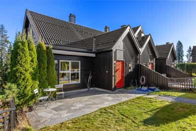Idyllisk og familievennlig enderekkehus med skjermede hageområder og garasjeplass. Helt inntil markagrensen, med direkte tilgang til milevis av tur- og skimuligheter året rundt. Solrikt, rolig og snøsikkert på et barnevennlig og bilfritt tun med mange småbarnsfamilier. Kun fem minutters gange til T-banen som tar deg enkelt ned til byen.