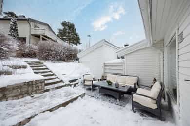 Pent og innbydende rekkehus | Solrike uteplasser | Attraktiv og barnevennlig beliggenhet | Nærme skoler og marka