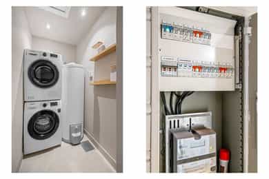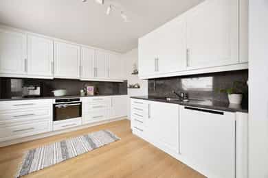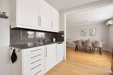 Hvitevarer som følger med er kjøleskap, oppvaskmaskin integrert ovn, vaske maskin og tørketrommel.