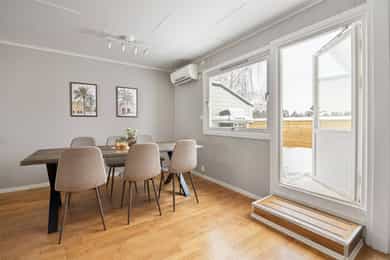Velkommen til Mellomåsveien 116, et praktisk og velholdt rekkehus med god planløsning, fine uteområder og en attraktiv beliggenhet på populære Trollåsen! Dette er en bolig som passer perfekt for familien som ønsker kort vei til barnehager, skoler, grøntområder og kollektivtransport – samtidig som man bor trygt og tilbaketrukket i et hyggelig boligtun.