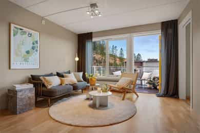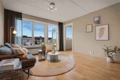 Trivelig 2-roms leilighet med god planløsning i populære Apeltun. Vestvendt balkong. Heis. Parkering.