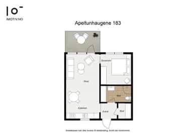 • Entré, bad, soverom, stue/kjøkken og en bod