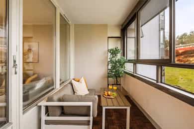 • Innglasset balkong på 6m² med ettermiddags-/kveldssol