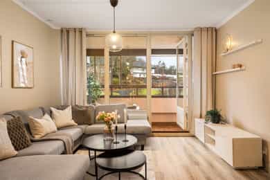 Innbydende 3-roms m/6m² innglasset balkong. Sentralvarme/varmtvann inkl. Parkeringsmulighet. 1 min gange til buss!