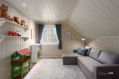 • Stor tomt med beplantet hage, ideell for lek og rekreasjon