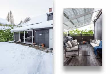 • Sydvendt, delvis overbygd terrasse på 27 kvm.
