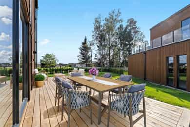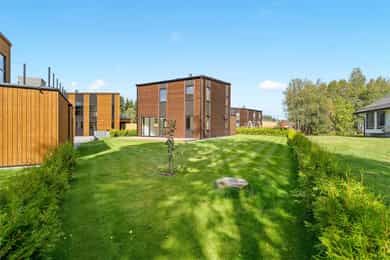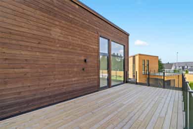 Nordvik Eiendom har gleden av å presentere Garmovegen 8F! Dette er et moderne og lekkert hus på Eidsvoll fra 2025, perfekt for barnefamilien. Det er gjort stilfulle farge- og materialvalg, så dette kan innredes til å bli ditt eget drømmehjem. Boligen har flislagt entré med varmekabler i gulvet, og det er peisovn i stua for behagelig oppvarming. Fra stua er det utgang til en stor terrasse på ca. 23 kvm, og fra hovedsoverommet er det utgang til takterrasse på samme størrelse, med utsikt mot hyggelige fellesarealer for sameiet. Boligen ligger i et attraktivt og barnevennlig område på Eidsvoll, med kort vei til dagligvarebutikker, apotek, treningssenter og kafeer m.m. Kort fortalt: - Ny enebolig fra 2025 - Moderne farge- og materialvalg - To store, solrike terrasser - 3 gode soverom