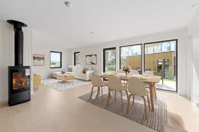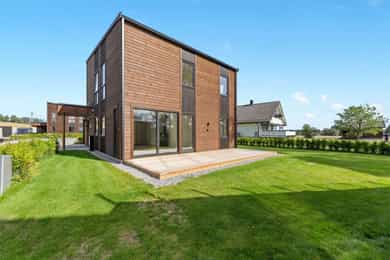 Nyoppført enebolig fra 2025 over to plan med høy standard. Stor stue/kjøkken-løsning, 3 sov, carport og romslig hage.