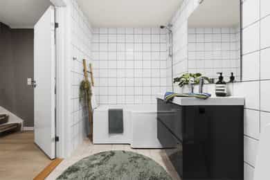 • Bad 2. etasje (2023): Ny baderomsinnredning og dusjkabinett gir en moderne og funksjonell baderomsløsning.
