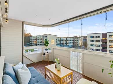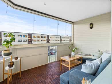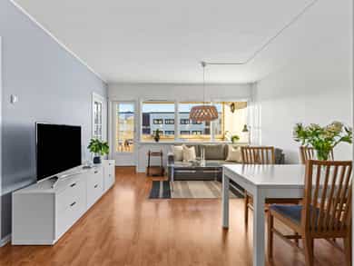 Lys og gjennomgående 3-roms. Stor og solrik innglasset balkong. Parkering. Fjernvarme inkl. Sentralt og attraktivt!