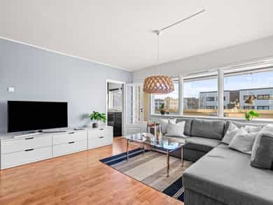 Velkommen til Sverres vei 33! En lys og gjennomgående 3-roms med en god planløsning og store rom. Fra stuen har du tilgang til en innglasset balkong på ca. 10 kvm mot vest. Beliggenheten er attraktiv og sentral ved Lørenskog sentrum. Du finner alt du trenger like utenfor døren!