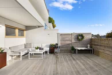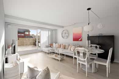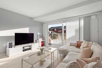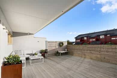 Innbydende og romslig endeleilighet med solrik terrasse, parkering i lukket anlegg og ettertraktet beliggenhet.