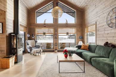• Vindusflater som gir rikelig med lys inn i hytta