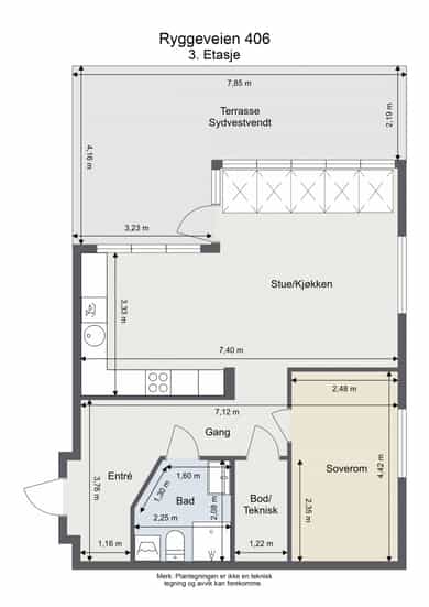 • Romslig 2-roms selveier med et internt bruksareal på 59 kvm.
