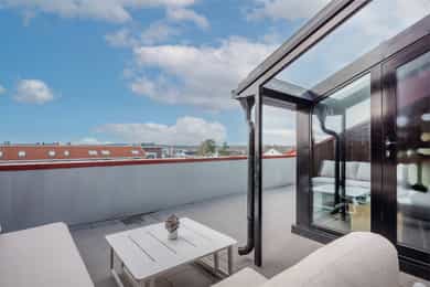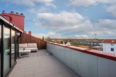 • Skjermet, flislagt sydvestvendt balkong på 24 kvm.