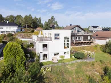 Vi har for salg en særs gjennomført enebolig med unike kvaliteter. Huset holder en høy og tidløs standard på materialer og utstyr. Her er det enkelt å se at det lagt stor vekt på både estetikk og praktisk utforming - skapt for den moderne familie. Eiendommen har en etterspurt beliggenhet i et etablert og barnevennlig boligområde på Hellvik. Boligen ligger i fremste rekke på en høyde og speiler godt utover Oslofjorden samtidig som vegetasjonen rundt skjermer tomten. Utsikten er spektakulær og må oppleves.