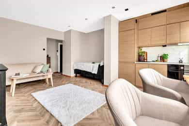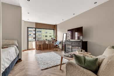 Tiltalende 1-roms med balkong - Heis - Kjøkken fra 2024 - Bad fra 2019 - Felles takterrasse - Fyring & varmtvann inkl.